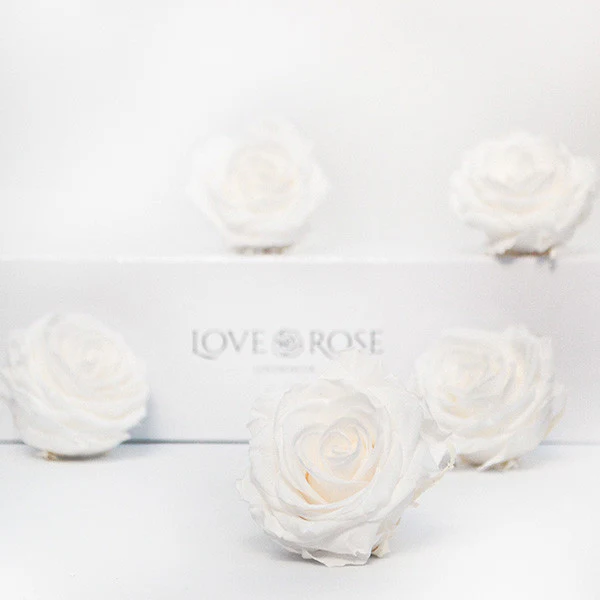 The ideal gift for your special someone is a set of 5 elegant infinity white rose heads, arranged beautifully within a luxury white gift box. Whether it's for birthdays, Valentine's Day, or other special occasions, this gift allows you to express your endless appreciation and love. Present a genuine preserved rose that retains its natural appearance and soft texture for over a year, symbolizing your enduring affection.